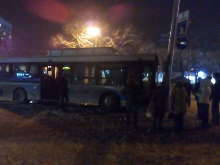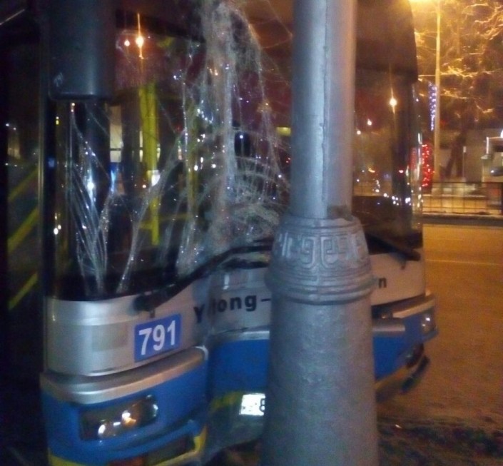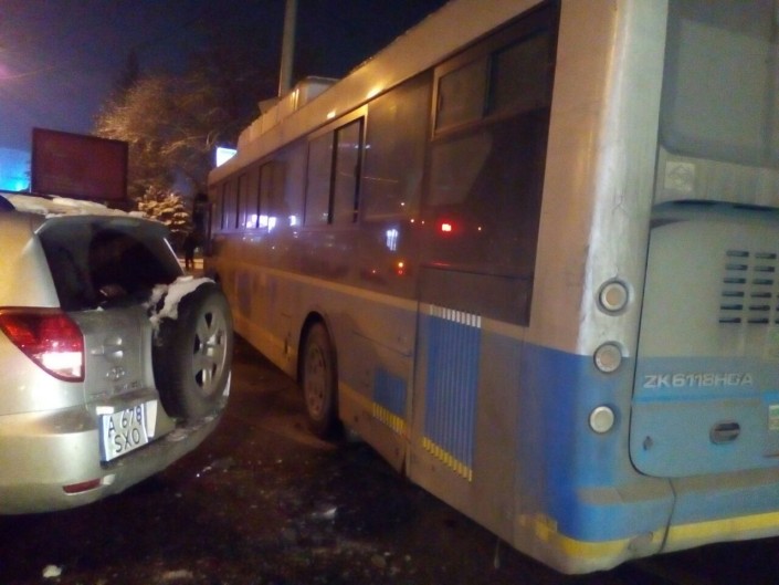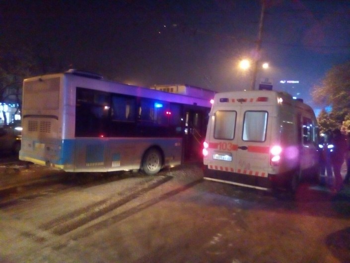 В Алматы автобус с пассажирами врезался в фонарный столб фото очевидца