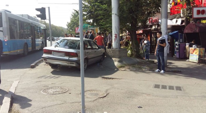 Авария произошла на пересечении улиц Толе би и Ауэзова. Как рассказали очевидцы, автомобиль Subaru двигался по улице Ауэзова, он выехал на перекресток на разрешающий сигнал светофора. В этот момент по улице Толе би на красный свет проехал автомобиль Mitsubishi, который по касательной задел Subaru.