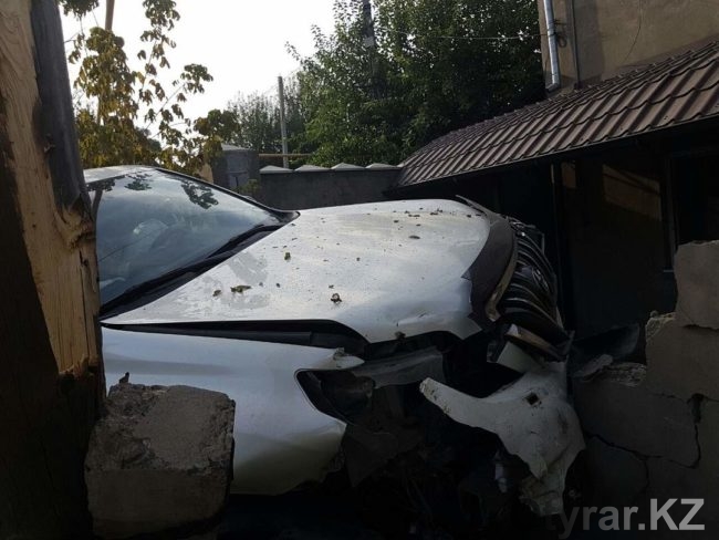 В Шымкенте водитель внедорожника снес столб и ограждение дома