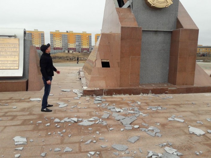 В Уральске выясняют причины падения плит с основания флагштока на новой площади, передает корреспондент Tengrinews.kz. Ранее фото с разбитыми плитами у монумента появились в Сети.