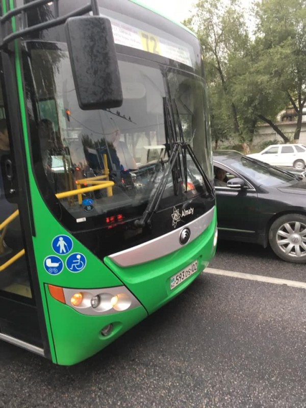 Чтобы привлечь к себе внимание, Темирлан начал стучать по стеклу и сигналить. Водитель его не слышал, пока пассажиры в салоне не стали кричать.