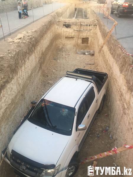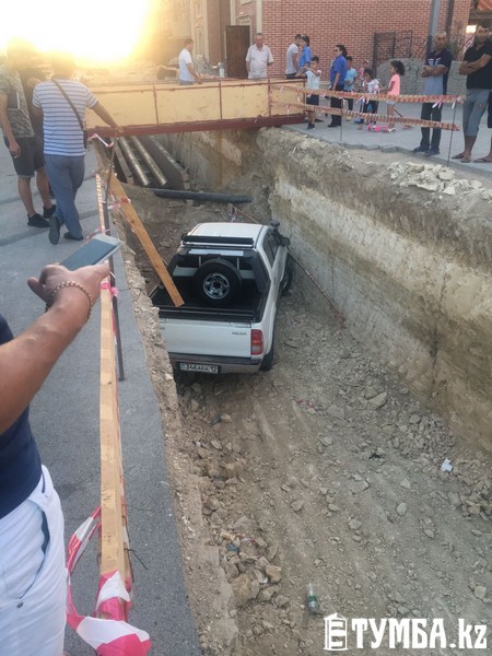 Внедорожник провалился в траншею в Актау