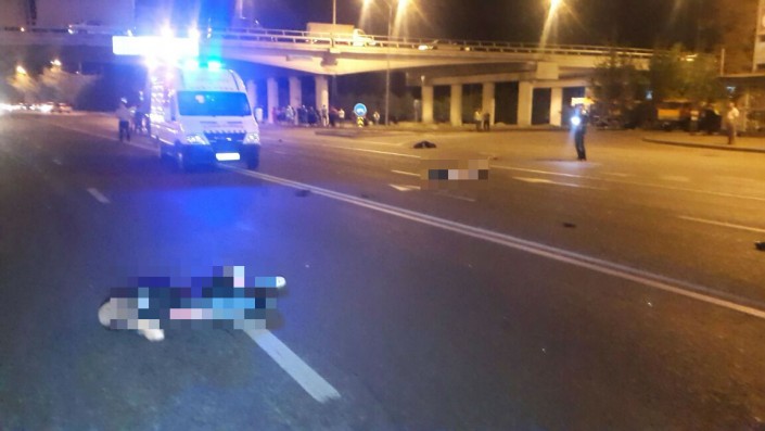 Черный BMW пятой модели на огромной скорости совершил наезд на пешеходов на проспекте Рыскулова напротив здания номер 75. По предварительным данным, люди перебегали дорогу в неположенном месте. Водителя иномарки увезли в полицию. Личности погибших и другие подробности ДТП выясняются.