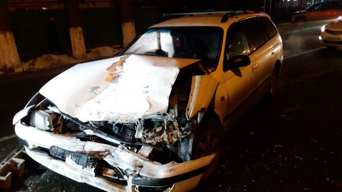 Авария произошла на пересечении проспекта Сейфуллина и улицы Котельникова. Со слов очевидцев, автомобили остановились перед пешеходным переходом, чтобы пропустить людей. В это время в них на полном ходу влетела Toyota Caldina.