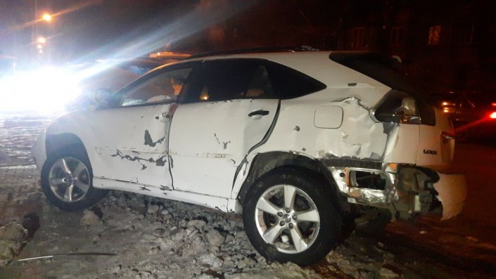 По информации очевидцев, водитель Lexus двигался в северном направлении по Шарипова. На пересечении с улицей Казыбек би на полной скорости в него врезалась Toyota Camry, водитель которой проигнорировал или не заметил знаки "Стоп" и "Уступи дорогу". От удара Lexus отлетел на обочину и снес несколько дорожных знаков.