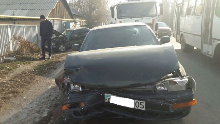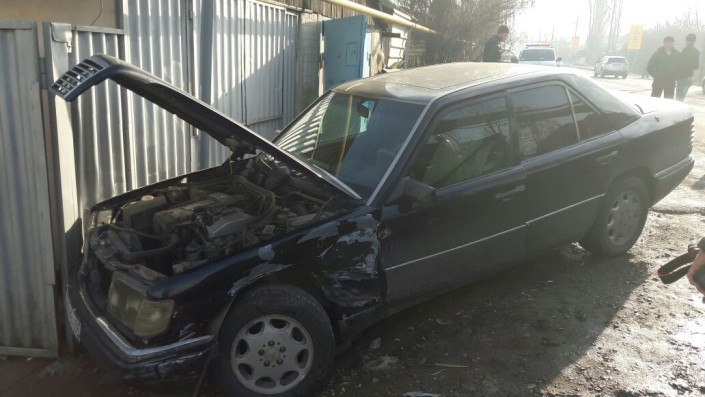 ДТП произошло по улице Яссауи, близ улицы Московская. Toyota Camry двигалась на север по Яссауи. По неизвестным причинам водитель не справился с управлением и на полном ходу врезался в припаркованный автомобиль Mercedes. От удара немецкую иномарку откинуло в забор частного дома. Toyota по инерции повредила несколько бордюров и вылетела в арык.