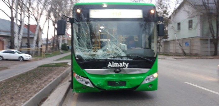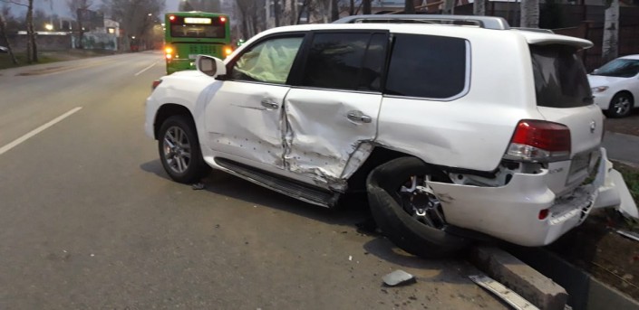 ДТП произошло на улице Аскарова. По словам очевидцев, автомобиль Toyota двигался в северном направлении по Аскарова. По неизвестной причине водитель выехал на полосу встречного движения и на полном ходу ударил внедорожник Lexus. От удара легковушку отбросило в автобус.