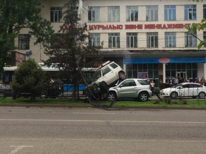 Второе за неделю курьезное ДТП произошло в Алматы © motor.kz