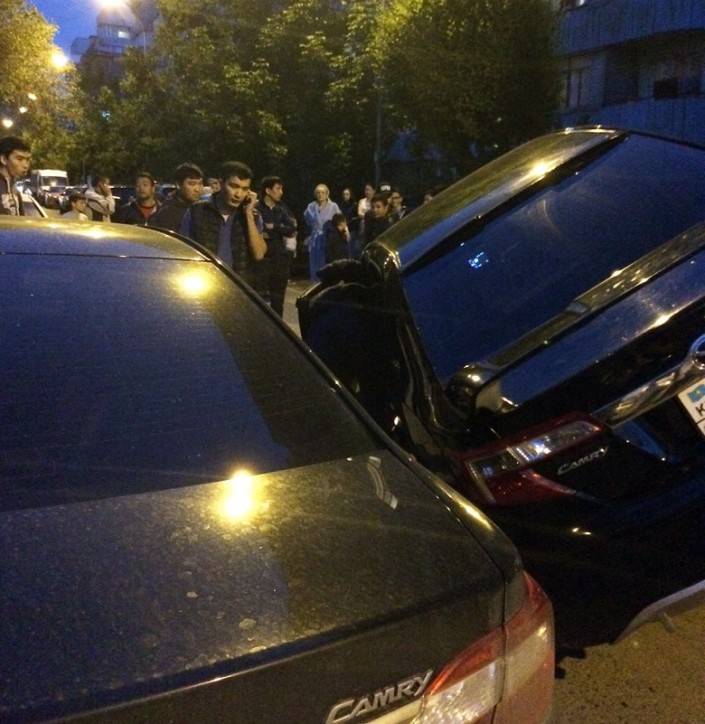 В Алматы произошло второе за неделю необычное ДТП. Вечером 3 мая в микрорайоне "Кулагер" Toyota Camry частично залетела на Toyota Corolla. Снимки курьезной аварии прислал порталу Motor.kz один из очевидцев. Он правда не уточнил, при каких обстоятельствах случилось ДТП. По всей вероятности, всему причиной банальное нарушение правил дорожного движения.