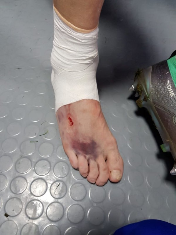 В официальном Twitter-аккаунте сборной России по футболу появилась фотография ноги защитника команды Ильи Кутепова, получившего травму в первом тайме игры с Хорватией, но доигравшего матч до конца.