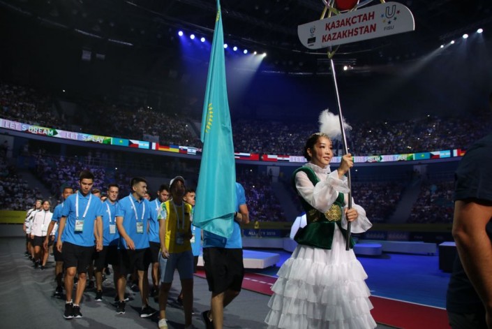 В торжественной церемонии открытия на "Алматы Арена", собравшей более 14 тысяч зрителей, приняли участие аким Алматы Бауыржан Байбек, министр образования и науки страны Ерлан Сагадиев и вице-президент ФИСУ Мариан Дымальский.