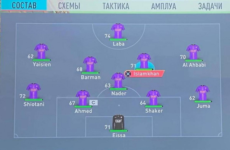 Рейтинг футболиста, или уровень его игры, составляет 71. При этом потенциал Исламхана разработчики оценили в 73.