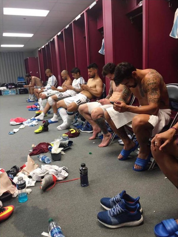 Фотография из раздевалки сборной Аргентины по футболу, сделанная сразу после крупной победы "альбиселесте" над командой Венесуэлы (со счетом 4:1) в четвертьфинале Кубка Америки, привлекла гораздо большее внимание пользователей, чем сам результат игры, сообщает rt.com.