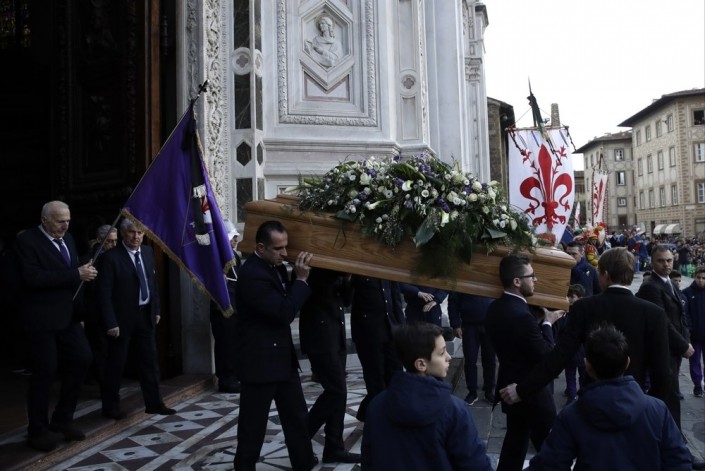 Италия проводила в последний путь капитана "Фиорентины" Давиде Астори, пишет Чемпионат.com. Он умер ночью 4 марта возрасте 31 года в гостиничном номере в Удине. Спортсмен приехал с командой на матч с "Удинезе", но не проснулся утром.