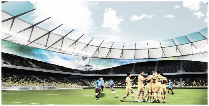 Отмечается, что так как старое здание было построено в 1958 году и имеет статус памятника архитектуры местного значения, концепт обновления не нарушает эстетику исторического фасада. При этом вместимость будет увеличена с 23 804 зрительских мест до 30 тысяч. Для этого предусматривается понижение существующей отметки уровня поля на десять метров и подведение зрительских трибун непосредственно к границам футбольного поля.