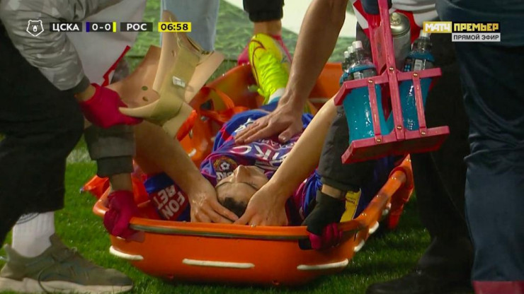 Казахстанского футболиста унесли с поля  на носилках в Москве Фото: ФК ЦСКА