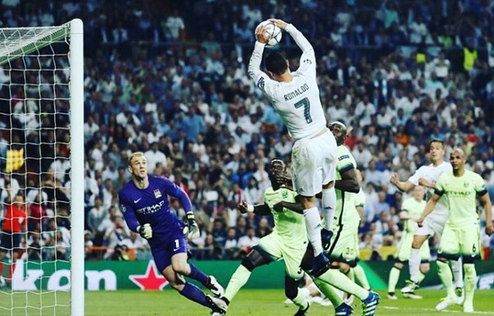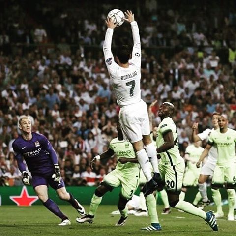 А во второй половине встречи произошел небольшой курьез. После очередного навеса, Криштиану Роналду, выпрыгнув выше всех, буквально занес руками мяч в ворота Джо Харта. Многие спортивные издания назвали снимок этого момента "кадром дня".