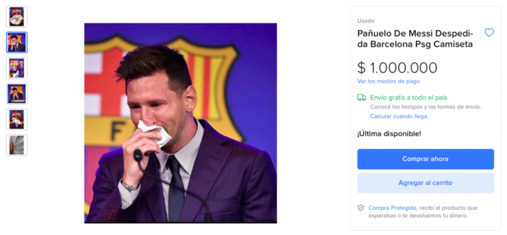 Начальная стоимость лота -1 миллион аргентинских песо (10 298 долларов США). Продавец утверждает, что платок содержит слезы спортсмена. Это, по мнению продавца, в будущем позволит его клонировать.