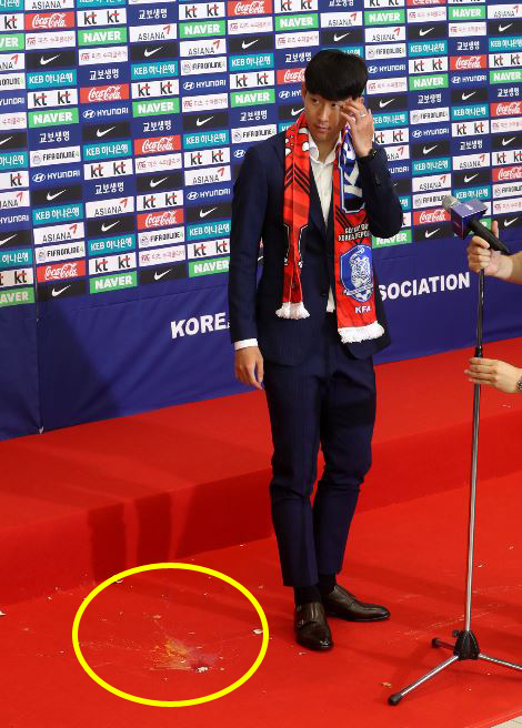 Инцидент произошел на глазах у многочисленных журналистов. Одно из яиц попало в форварда команды Сон Хын Мина. Впрочем, серьезного вреда никому не причинили.
