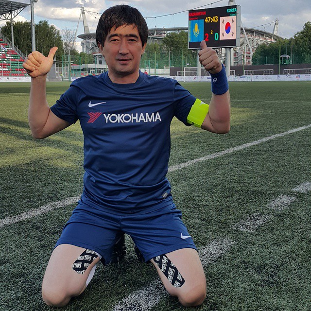 Во вторник, 9 июня, наша команда, в составе которой выступают представители популярных музыкальных групп Ringo, Mysterions, "Музарт", "Арай", "Нур-Мукасан" и других, обыграла сборную Южной Кореи со счетом 3:1. Авторами голов стали Казбек Алкожаев, Амангельды Менгдибаев и Батыр Байназаров.