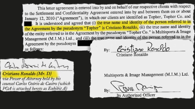 Der Spiegel приложил к своему материалу документы, на которых есть подпись самого Роналду. Впрочем, как отмечает championat.com, немецкое издание привело доказательства перечисления денег, но не факта изнасилования футболистом.
