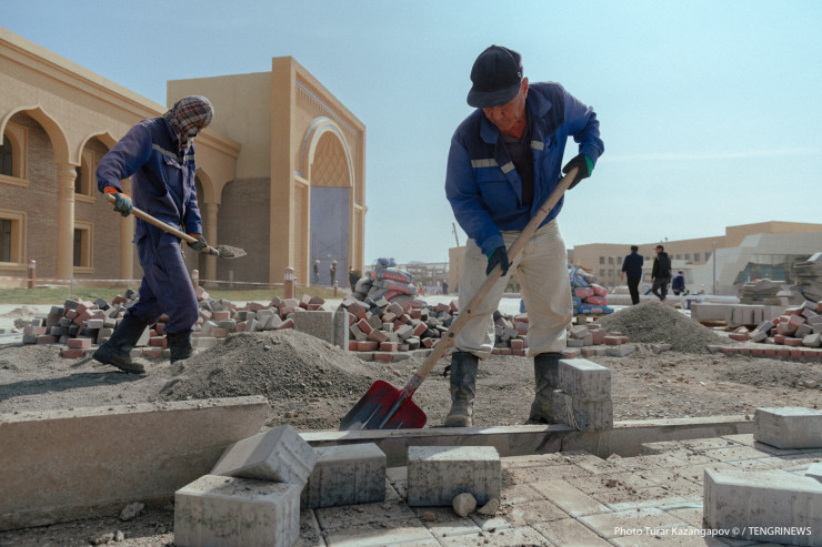"Сейчас в связи с пандемией Узбекистан закрыт, поэтому привлекается местная рабочая сила, очень много местных, вот, допустим, из ближайшего села Ынтымак и других поселков. Даже сами стройкомпании организуют для рабочих транспорт", - говорит заместитель руководителя управления архитектуры и градостроительства Туркестанской области Бактыбай Дюйсебеков.
