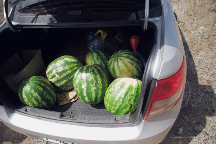 Напоследок Базарбай и Аян подарили нам полный багажник арбузов.