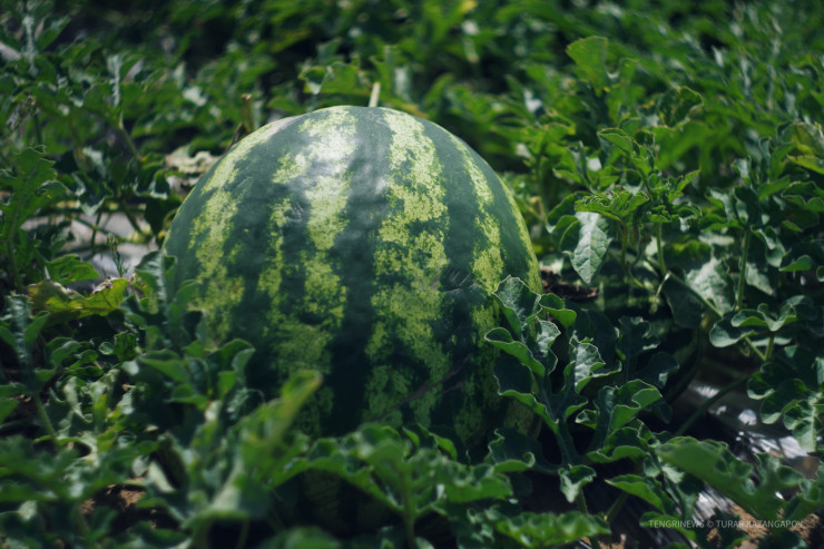 "На одном и том же месте арбузы выращивать нельзя, земля должна "отдохнуть" не меньше пяти лет. Поэтому каждый год меняем участок. Лучше всего арбузам подходит песчаная почва. В этой местности, на берегу водохранилища, она именно такая. Поливаем их каждые два-три дня", - делится знаниями Аян.