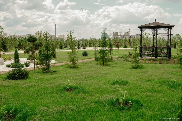 Еще один сквер появился на правом берегу, в районе пересечения проспектов Женис и Богенбай батыра.