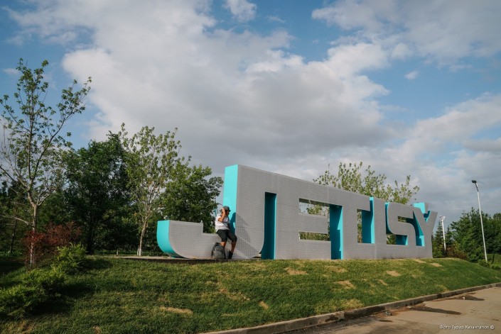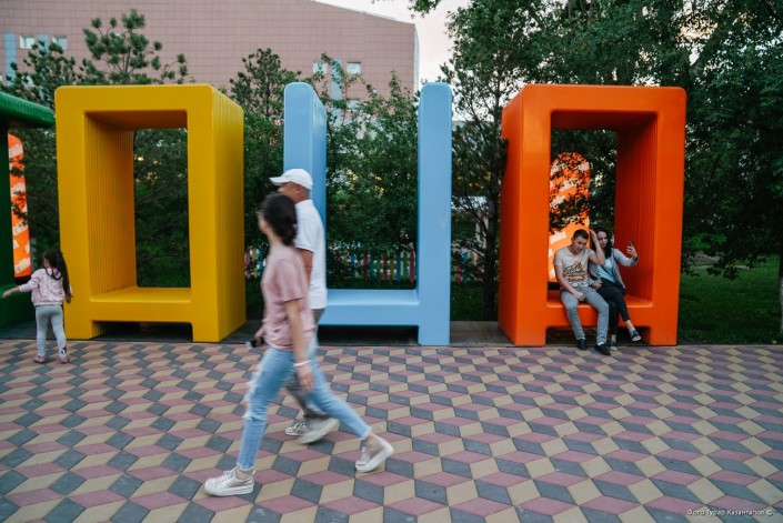 Огромные разноцветные скамейки в виде букв вместе составляют слово - имя столицы.