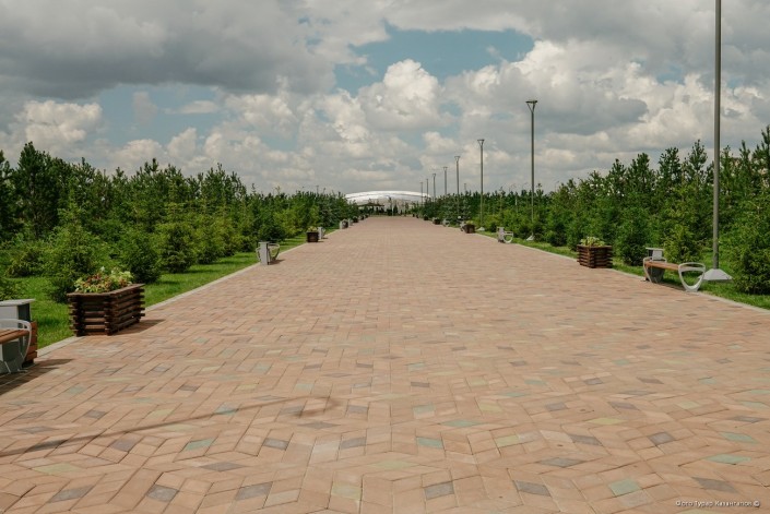 велодорожки, беговые дорожки и тротуары из брусчатки.