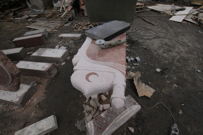 Такой цех по изготовлению памятников на этой улице не один. Подобные фирмы здесь чуть ли не на каждом шагу. Сами бизнесмены называют разные цифры: говорят, в одном квартале работают от 15 до 30 предприятий.