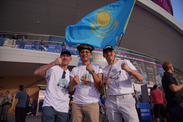 И вот в зале заиграла мелодия Seven Nation Army. Казахстанца встречают бурными овациями и включенными камерами.