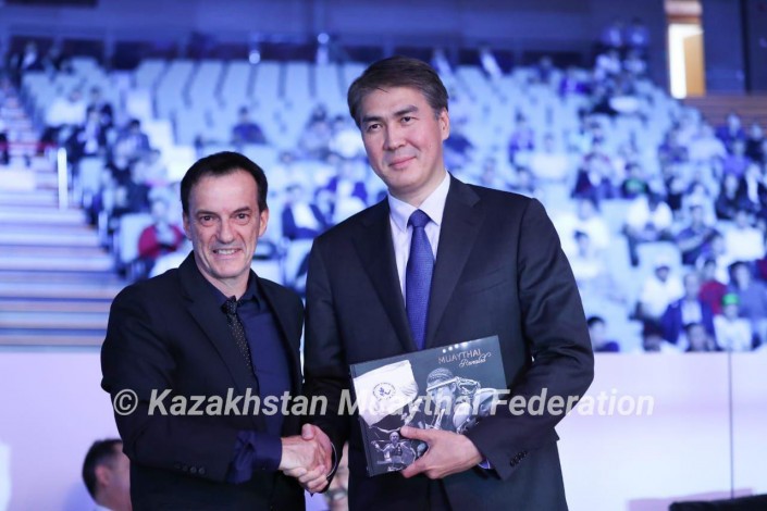 Секретарь Всемирного совета муайтай (WMC) Стефан Фокс и аким Астаны Асет Исекешев