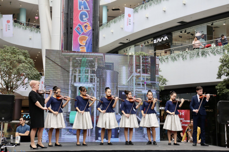 На время проведения фестиваля центральный холл торгово-развлекательного центра был поделен на несколько зон и превратился в настоящий парк развлечений. Дети участвовали в различных экомастер-классах. К примеру, по пошиву экосумок, а также по изготовлению сувениров из вторичного сырья.
