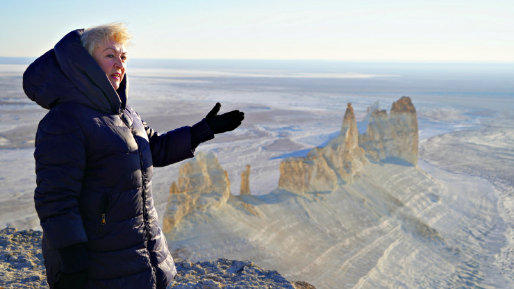 Бұл жергілікті туристік компанияның жолнұсқаушысы Людмила Павловна. Ол ақпараттық турдың қатысушыларын жергілікті мекенмен таныстырып, аңыз-әңгімелерді бөлісті. Оның айтуынша, көбіне Маңғыстаудың табиғатына Жапония және Италиядан келетін туристер қызығушылық білдіреді.