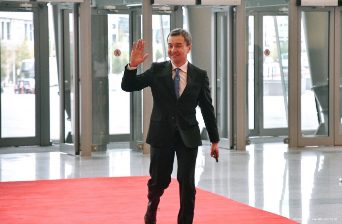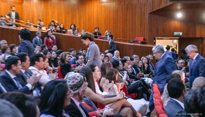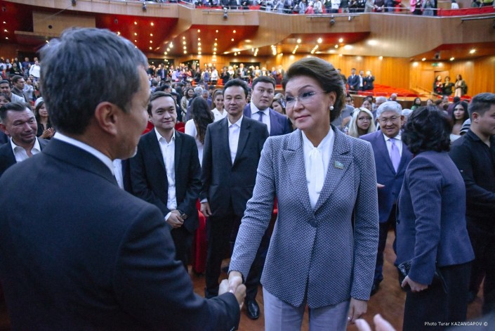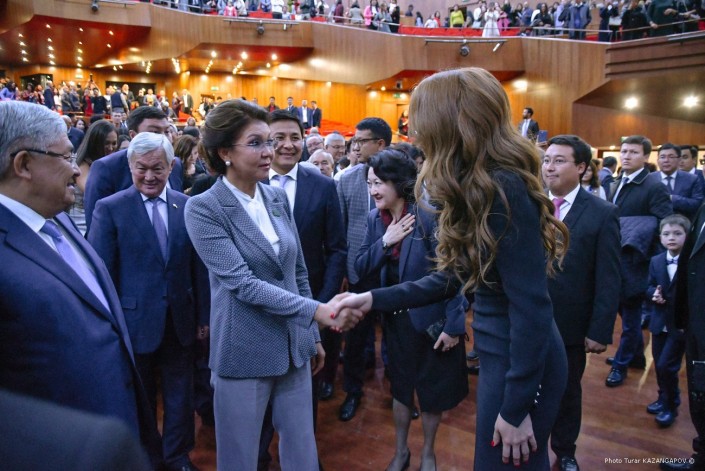 Когда в зале появилась спикер Сената Дарига Назарбаева, погас свет и началось кино.