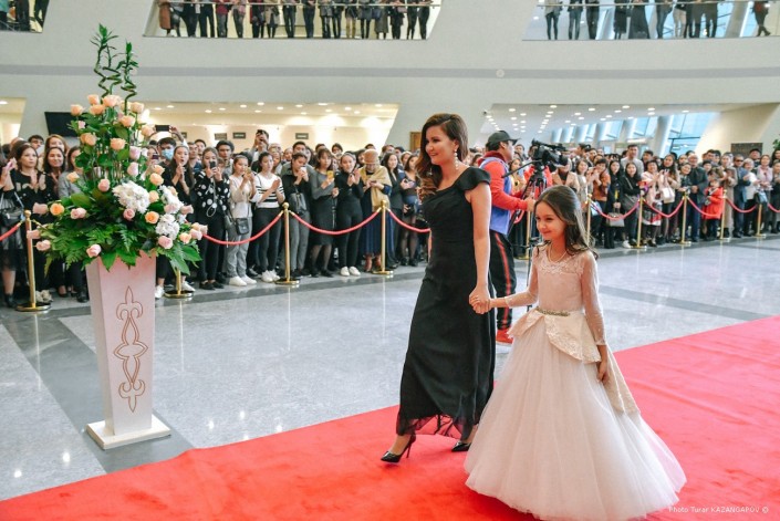 Салтанат Серкебаева была выбрана на роль 15-летней Томирис. По красной дорожке Салтанат прошлась вместе со своей мамой, которая не скрывала волнения.