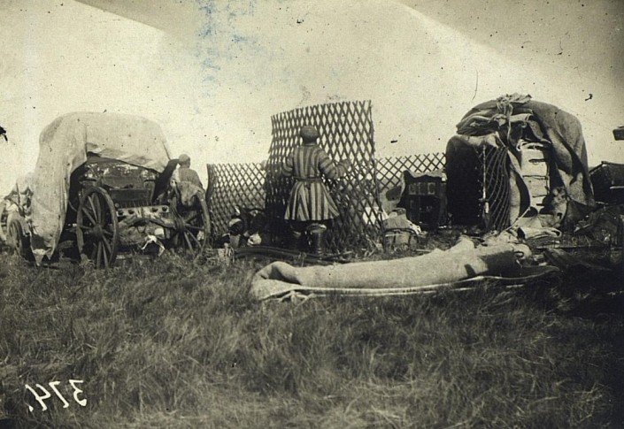 Продажа кибиток. Под кибитками автор фотографии скорее всего подразумевал юрты. Эта фотография показывает, что казахи в этот период втянулись в рыночные отношения. Они уже пользовались покупными товарами. Бывало, что покупали юрту по частям, иногда обменивали на баранов. Кошмы для покрытия юрт в основном изготавливали сами.