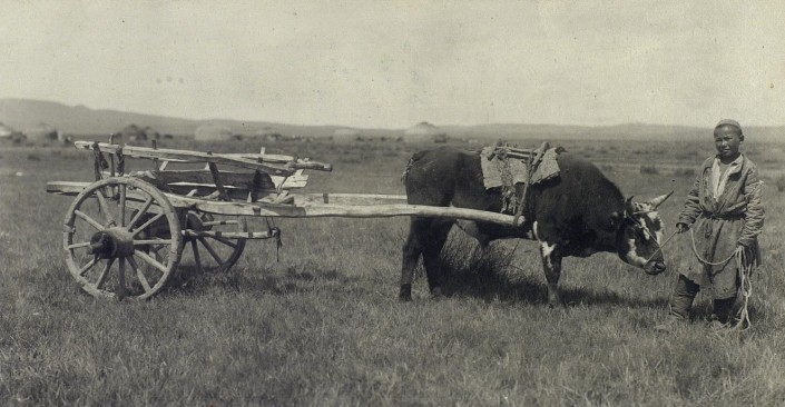 Воловья упряжка и телега-двуколка. Дудин С.М. Казахстан, Семипалатинская обл. 1899 г.