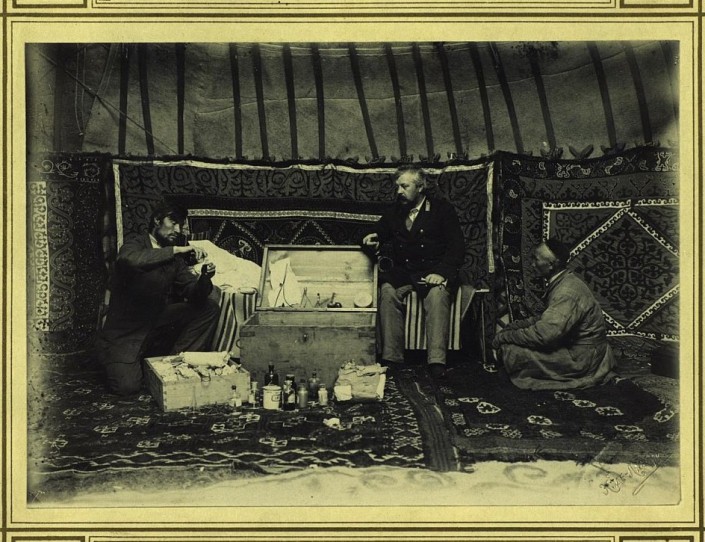Посещение больного казаха доктором и фельдшером в юрте. На этом фото рядом с русским доктором, возможно, находится фельдшер-казах. В то время уже были казахи, которые получили образование и занимались медицинской практикой.