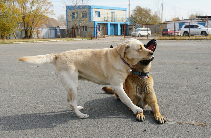 В центре из восьми собак всего две самки. В период течки их выгуливают отдельно, но в остальное время они живут вместе с самцами.
