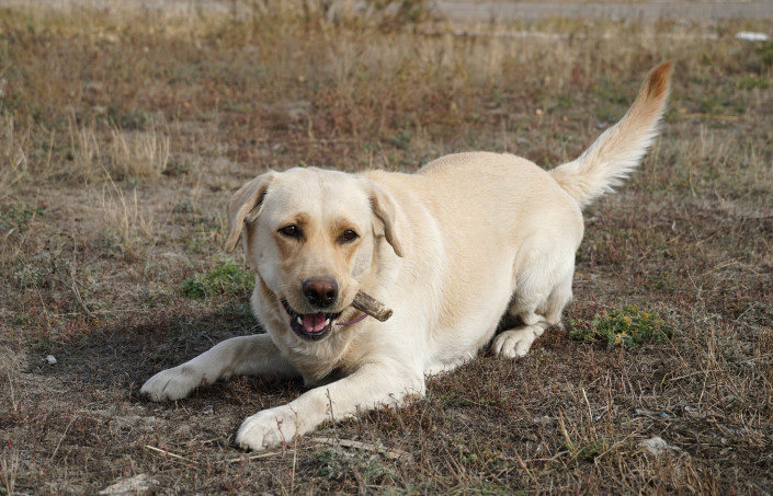 Это полуторагодовалый лабрадор Рада. Она еще не прошла аттестацию, но уже многое умеет. Рада принадлежит кинологу Павлу Володину. В свое время Володин обучил всему и Гошу, а затем передал другому кинологу для службы.