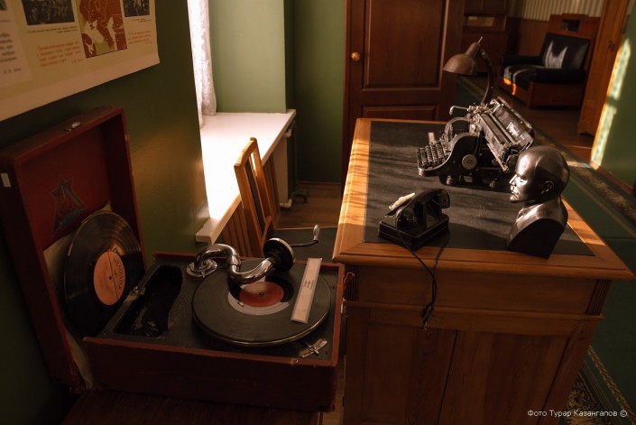 Портрет Сталина висит и в кабинете управляющего лагерями Карлага. В отличие от подвала этого здания, в котором настоящие камеры никогда не располагались, а был лишь архив, это место в точности такое, каким было в прошлом веке.