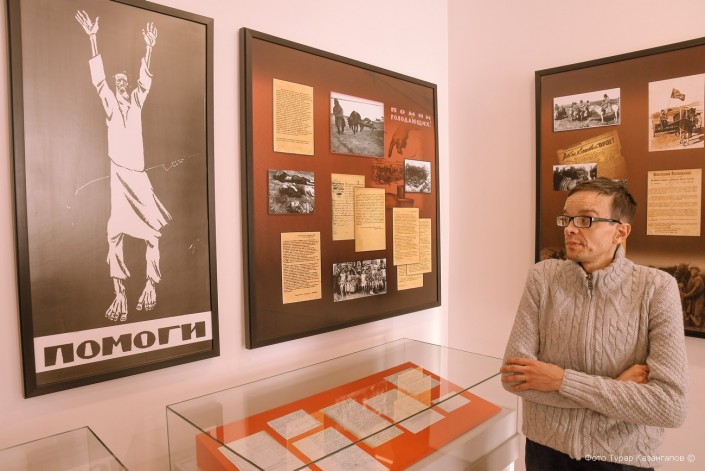 "Это великий джут. Голод был создан искусственно из-за проводимых голощекинских реформ под названием "Малый октябрь". Все это привело к страшным потерям. Во-первых, произошло снижение численности населения, во-вторых, население, которое испокон веков вело кочевой образ жизни, буквально заставили пересесть на оседлый образ", - рассказывает научный сотрудник Музея памяти жертв политических репрессий поселка Долинка Иван Кондрашов. Работает он здесь уже 12 лет.