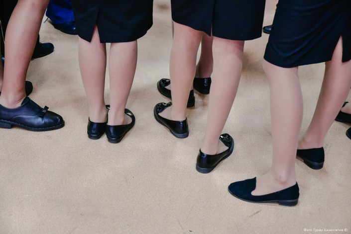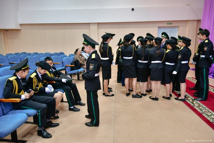 Кадеты в ожидании репетиции вальса. К празднику Наурыз мейрамы в школе пройдет офицерский бал.