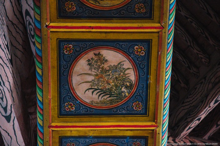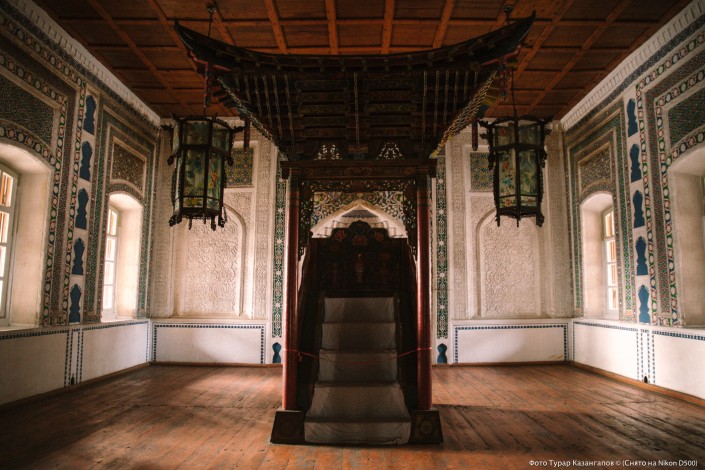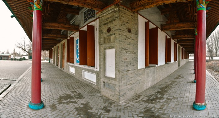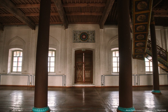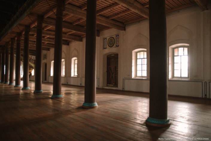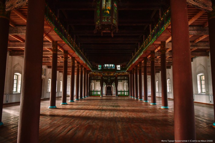"Построено это здание без гвоздей, вот эти колонны - это тяньшанская ель, всего таких колонн здесь 122. Сама мечеть строилась пять лет - с 1887 по 1892 год (в Сети можно найти информацию, что строительство всего ансамбля велось десять лет и было закончено в 1895 году, но в самом музее считают, что это не верно - прим. автора)", - говорит работник архитектурно-художественного музея "Жаркентская мечеть".