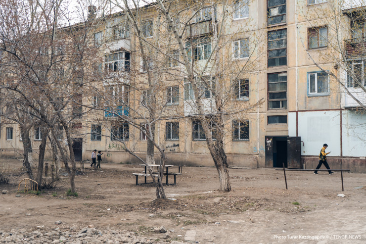 Тот же местный житель обращает наше внимание на новостройки с уложенным во дворе асфальтом и на старые советские четырехэтажки, во дворах которых вместо асфальта просто земля и старые качели.