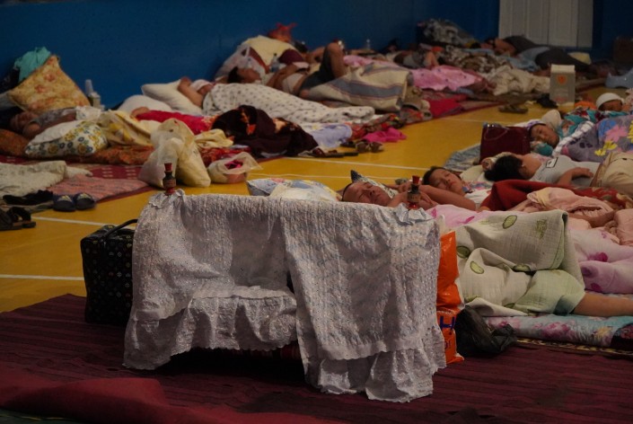 Часть людей ночевала в мечети.