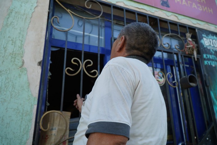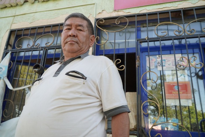 У этого мужчины продуктовый магазин в центре Арыси. Взрывной волной окна этого здания тоже были выбиты.